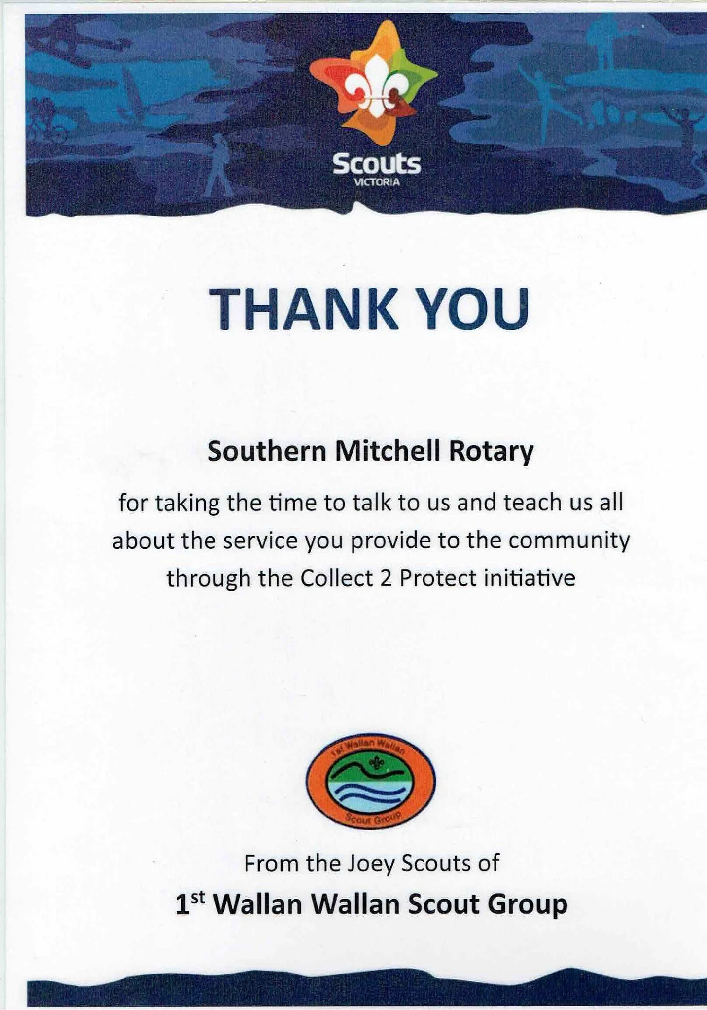 We have been busy looking after our environment, collecting lids for recycling, delivering to GT in Geelong as well as promoting our 'Collect to Protect' project. Thanks to Rotarian Lisa Kyllo and husband Andrew for all their hard work.